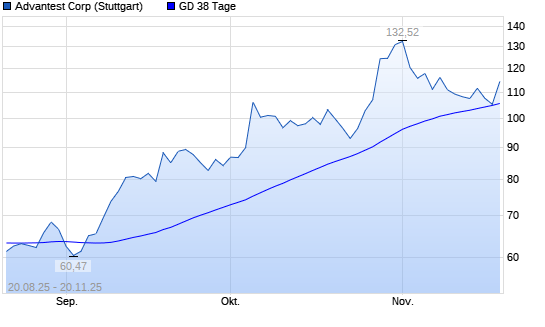 Mit dem Rücksetzer auf 104,76 EUR hat die Advantest-Aktie am 19.11.2025 die 38-Tage-Linie nach unten gekreuzt.