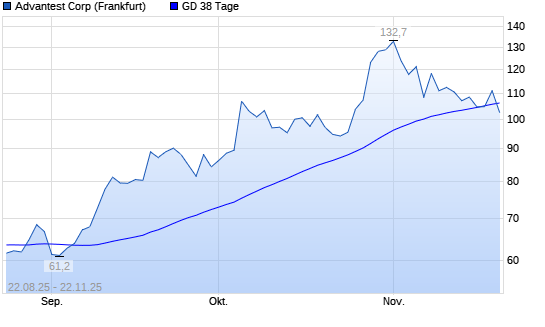 Mit dem Rücksetzer auf 102,52 EUR hat die Advantest-Aktie am 21.11.2025 die 38-Tage-Linie nach unten gekreuzt.