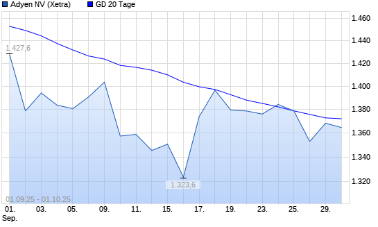 Mit dem Anstieg auf 1.392,60 EUR hat die Adyen-Aktie am 30.09.2025 die 20-Tage-Linie nach oben gekreuzt.