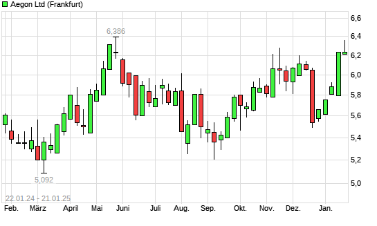 Mit dem Anstieg auf 6,36 EUR hat die Aegon-Aktie (ISIN BMG0112X1056) am 20.01.2025 ein neues 6-Monats-Hoch erreicht und damit den Kurs vom 17.01.2025 eingestellt.