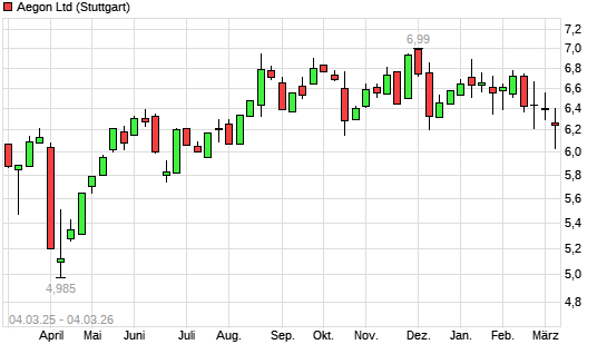 Mit dem Rücksetzer auf 6,05 EUR hat die Aegon-Aktie (ISIN BMG0112X1056) am 03.03.2026 ein neues 6-Monats-Tief erreicht und damit den Kurs vom 10.12.2025 eingestellt.