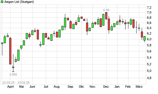 Mit dem Rücksetzer auf 6,04 EUR hat die Aegon-Aktie (ISIN BMG0112X1056) am 09.03.2026 ein neues 6-Monats-Tief erreicht und damit den Kurs vom 03.03.2026 eingestellt.