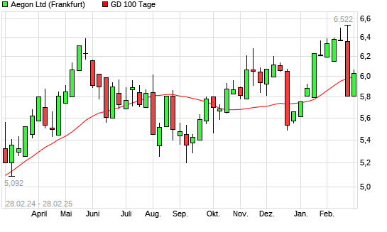 Mit dem Anstieg auf 6,02 EUR hat die Aegon-Aktie am 27.02.2025 die 100-Tage-Linie nach oben gekreuzt.