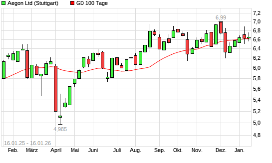 Mit dem Anstieg auf 6,70 EUR hat die Aegon-Aktie am 15.01.2026 die 100-Tage-Linie nach oben gekreuzt.