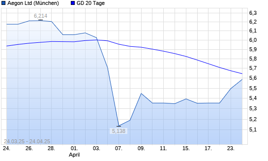 Mit dem Anstieg auf 5,58 EUR hat die Aegon-Aktie am 23.04.2025 die 20-Tage-Linie nach oben gekreuzt.