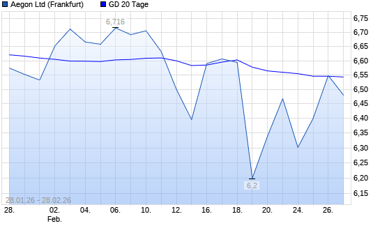Mit dem Rücksetzer auf 6,48 EUR hat die Aegon-Aktie am 27.02.2026 die 20-Tage-Linie nach unten gekreuzt.