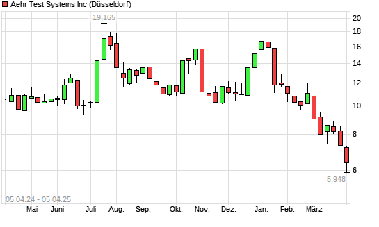 Mit dem Rücksetzer auf 6,06 EUR hat die Aehr Test Systems-Aktie (ISIN US00760J1088) am 04.04.2025 ein neues 3-Jahres-Tief erreicht und damit den Kurs vom 03.04.2025 eingestellt.
