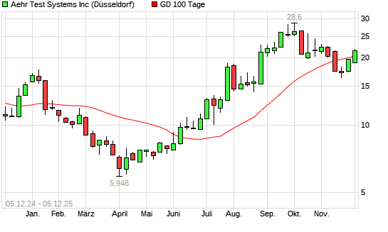 Mit dem Anstieg auf 21,00 EUR hat die Aehr Test Systems-Aktie am 04.12.2025 die 100-Tage-Linie nach oben gekreuzt.