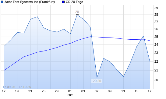 Mit dem Anstieg auf 25,12 EUR hat die Aehr Test Systems-Aktie am 16.10.2025 die 20-Tage-Linie nach oben gekreuzt.