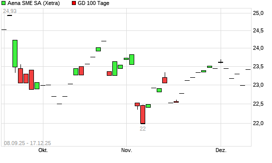 Mit dem Rücksetzer auf 23,27 EUR hat die Aena SME-Aktie am 16.12.2025 die 100-Tage-Linie nach unten gekreuzt.