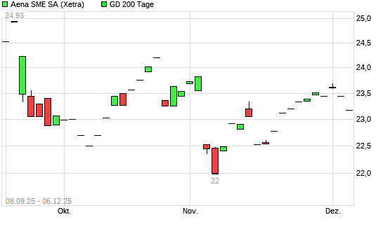 Mit dem Rücksetzer auf 22,87 EUR hat die Aena SME-Aktie am 05.12.2025 die 200-Tage-Linie nach unten gekreuzt.