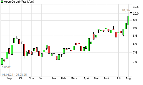 Mit dem Anstieg auf 30,20 EUR hat die Aeon-Aktie (ISIN JP3388200002) am 04.08.2025 ein neues All-Time-High erreicht und damit den Kurs vom 01.08.2025 eingestellt.