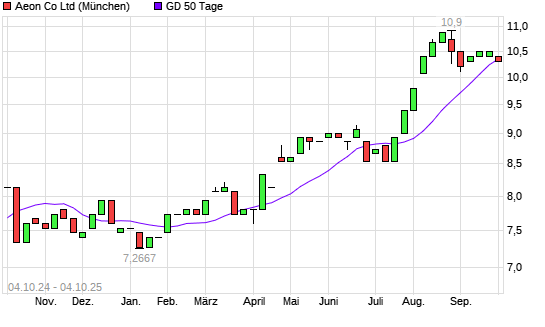 Mit dem Anstieg auf 10,50 EUR hat die Aeon-Aktie am 03.10.2025 die 50-Tage-Linie nach oben gekreuzt.