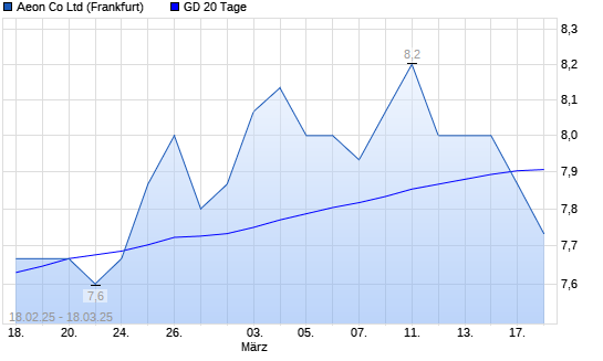 Die Aeon-Aktie befindet sich seit dem 14.01.2025 im langfristigen Aufwärtstrend und hat in diesem Zeitraum +9,61% an Wert gewonnen. Der Abstand zur 200-Tage-Linie beträgt aktuell +5,82%.
