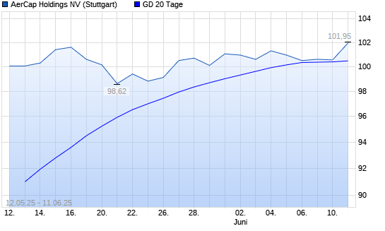 Mit dem Rücksetzer auf 100,60 EUR hat die Aercap Holdings-Aktie am 10.06.2025 die 20-Tage-Linie nach unten gekreuzt.