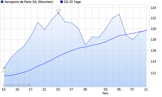 Mit dem Anstieg auf 119,90 EUR hat die Aeroports de Paris-Aktie am 10.11.2025 die 20-Tage-Linie nach oben gekreuzt.