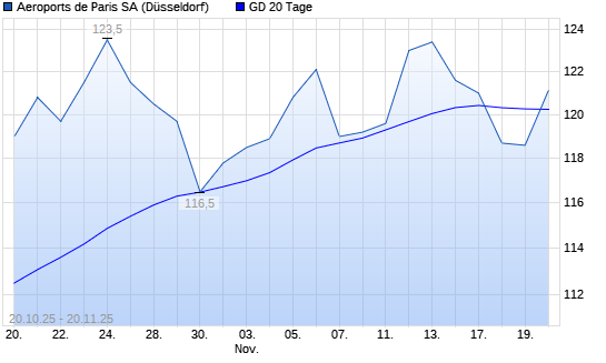 Mit dem Anstieg auf 120,40 EUR hat die Aeroports de Paris-Aktie am 19.11.2025 die 20-Tage-Linie nach oben gekreuzt.