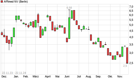 Mit dem Rücksetzer auf 2,58 EUR hat die Affimed-Aktie (ISIN NL0015001ZQ0) am 21.11.2024 ein neues All-Time-Low erreicht und damit den Kurs vom 14.10.2024 eingestellt.