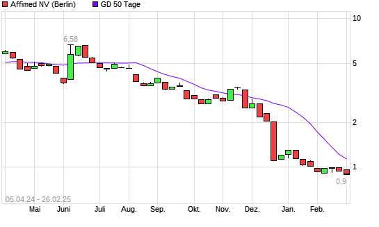 Mit dem Anstieg auf 0,97 EUR hat die Affimed-Aktie am 04.04.2025 die 50-Tage-Linie nach oben gekreuzt.