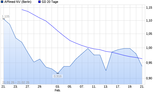 Mit dem Rücksetzer auf 0,95 EUR hat die Affimed-Aktie am 20.02.2025 die 20-Tage-Linie nach unten gekreuzt.