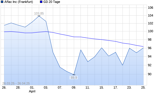 Mit dem Anstieg auf 96,02 EUR hat die Aflac-Aktie am 25.04.2025 die 20-Tage-Linie nach oben gekreuzt.