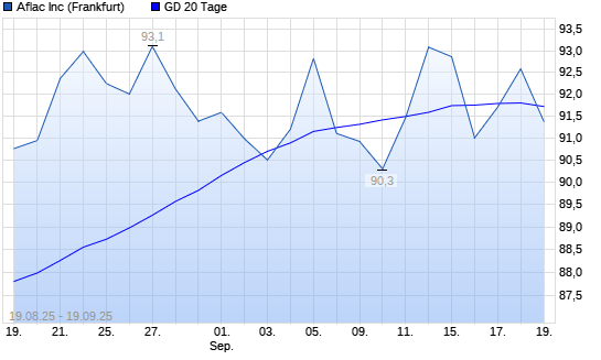 Mit dem Anstieg auf 92,58 EUR hat die Aflac-Aktie am 18.09.2025 die 20-Tage-Linie nach oben gekreuzt.