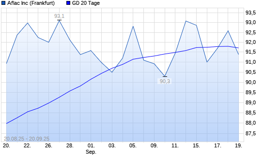 Mit dem Rücksetzer auf 91,38 EUR hat die Aflac-Aktie am 19.09.2025 die 20-Tage-Linie nach unten gekreuzt.