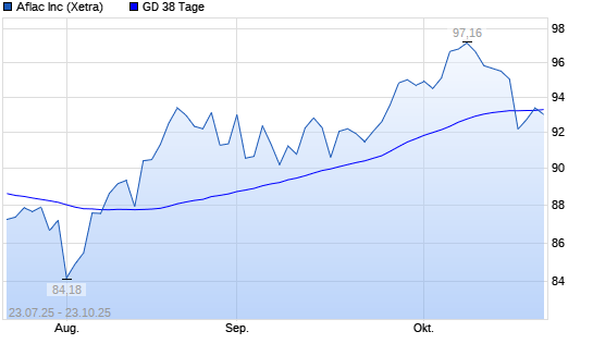 Mit dem Rücksetzer auf 93,10 EUR hat die Aflac-Aktie am 22.10.2025 die 38-Tage-Linie nach unten gekreuzt.