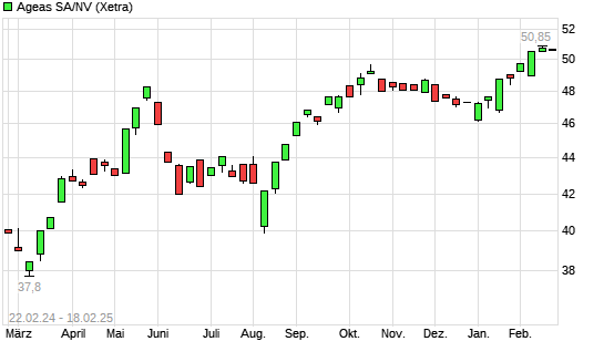 Mit dem Anstieg auf 52,25 EUR hat die Ageas-Aktie (ISIN BE0974264930) am 19.02.2025 ein neues 3-Jahres-Hoch erreicht und damit den Kurs vom 13.02.2025 eingestellt.
