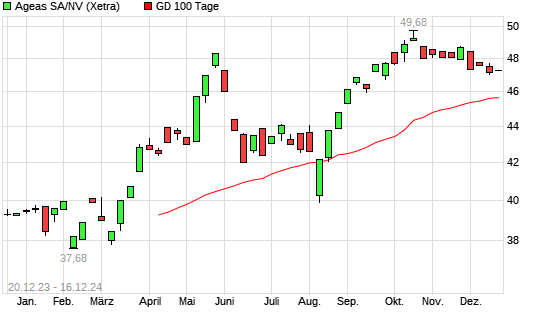 Mit dem Rücksetzer auf 45,48 EUR hat die Ageas-Aktie am 19.12.2024 die 100-Tage-Linie nach unten gekreuzt.