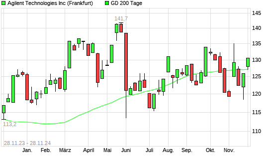 Mit dem Anstieg auf 128,54 EUR hat die Agilent Technologies-Aktie am 27.11.2024 die 200-Tage-Linie nach oben gekreuzt.