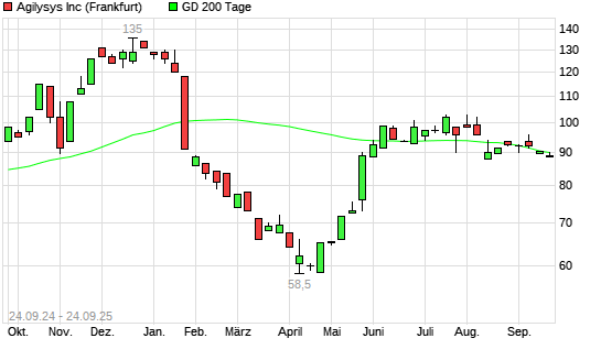 Mit dem Anstieg auf 90,00 EUR hat die Agilysys-Aktie am 23.09.2025 die 200-Tage-Linie nach oben gekreuzt.