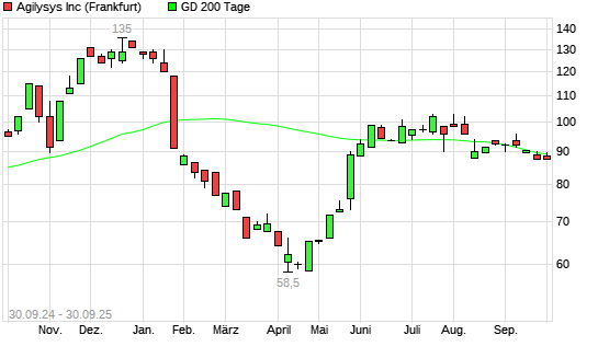 Mit dem Anstieg auf 89,50 EUR hat die Agilysys-Aktie am 29.09.2025 die 200-Tage-Linie nach oben gekreuzt.