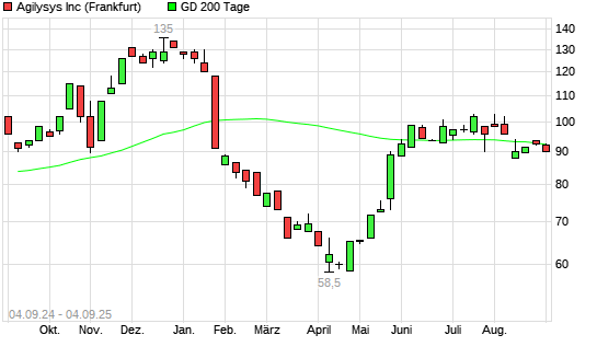 Mit dem Rücksetzer auf 91,50 EUR hat die Agilysys-Aktie am 03.09.2025 die 200-Tage-Linie nach unten gekreuzt.