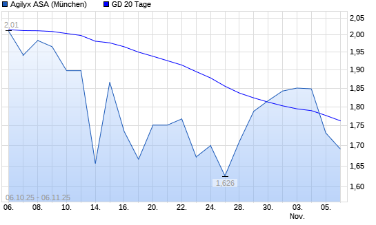 Mit dem Rücksetzer auf 1,66 EUR hat die Agilyx-Aktie am 05.11.2025 die 20-Tage-Linie nach unten gekreuzt.