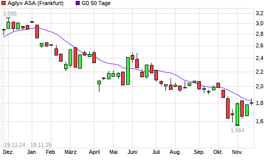 Mit dem Rücksetzer auf 1,81 EUR hat die Agilyx-Aktie am 18.11.2025 die 50-Tage-Linie nach unten gekreuzt.