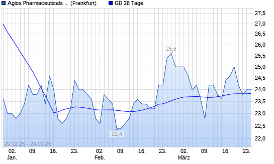 Mit dem Anstieg auf 24,00 EUR hat die Agios Pharmaceuticals-Aktie am 23.03.2026 die 38-Tage-Linie nach oben gekreuzt.