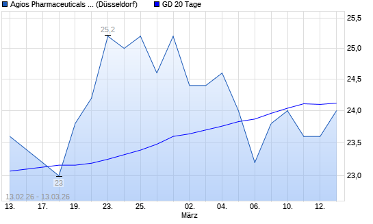 Mit dem Rücksetzer auf 23,80 EUR hat die Agios Pharmaceuticals-Aktie am 12.03.2026 die 20-Tage-Linie nach unten gekreuzt.