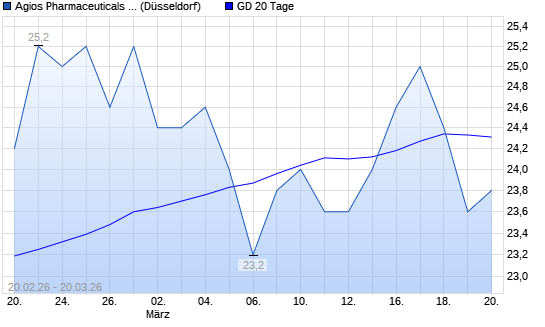 Mit dem Rücksetzer auf 24,20 EUR hat die Agios Pharmaceuticals-Aktie am 19.03.2026 die 20-Tage-Linie nach unten gekreuzt.