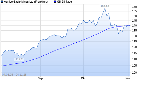 Mit dem Anstieg auf 140,50 EUR hat die Agnico-Eagle Mines-Aktie am 03.11.2025 die 38-Tage-Linie nach oben gekreuzt.
