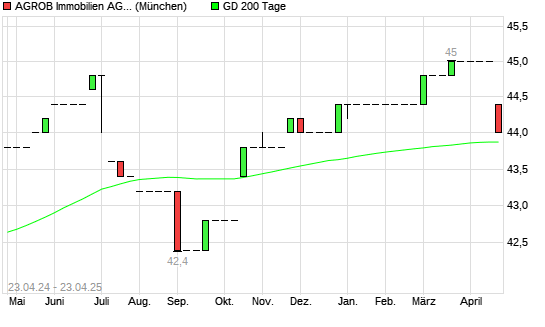 Mit dem Rücksetzer auf 43,40 EUR hat die Agrob VZ-Aktie am 22.04.2025 die 200-Tage-Linie nach unten gekreuzt.