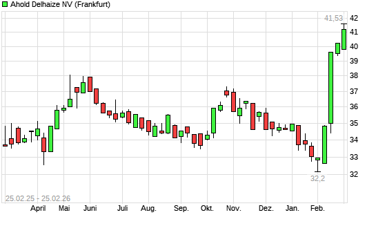 Mit dem Anstieg auf 41,42 EUR hat die Ahold Delhaize-Aktie (ISIN NL0011794037) am 24.02.2026 ein neues All-Time-High erreicht und damit den Kurs vom 23.02.2026 eingestellt.