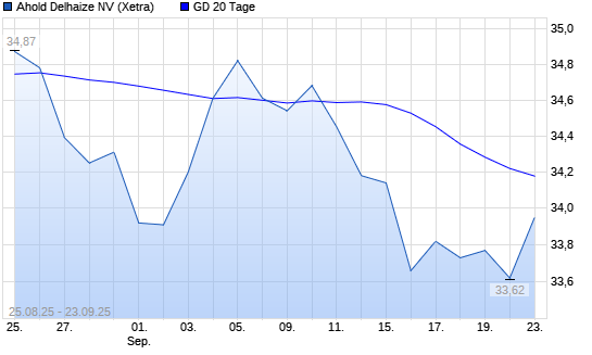 Mit dem Anstieg auf 34,36 EUR hat die Ahold Delhaize-Aktie am 22.09.2025 die 20-Tage-Linie nach oben gekreuzt.
