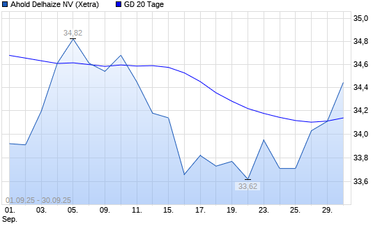 Mit dem Anstieg auf 34,07 EUR hat die Ahold Delhaize-Aktie am 29.09.2025 die 20-Tage-Linie nach oben gekreuzt.