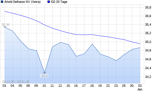 Mit dem Anstieg auf 34,96 EUR hat die Ahold Delhaize-Aktie am 02.01.2026 die 20-Tage-Linie nach oben gekreuzt.