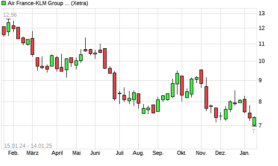 Mit dem Rücksetzer auf 7,00 EUR hat die Air France-KLM-Aktie (ISIN FR001400J770) am 13.01.2025 ein neues All-Time-Low erreicht und damit den Kurs vom 04.12.2024 eingestellt.