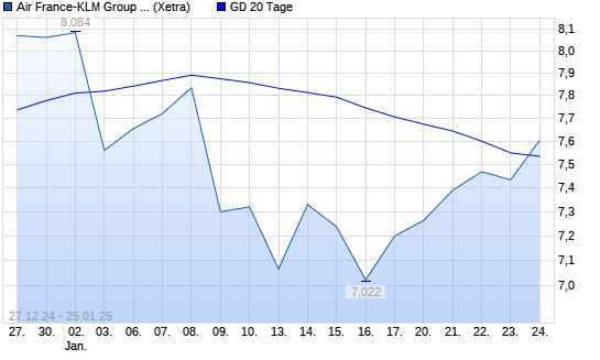 Mit dem Anstieg auf 7,55 EUR hat die Air France-KLM-Aktie am 24.01.2025 die 20-Tage-Linie nach oben gekreuzt.