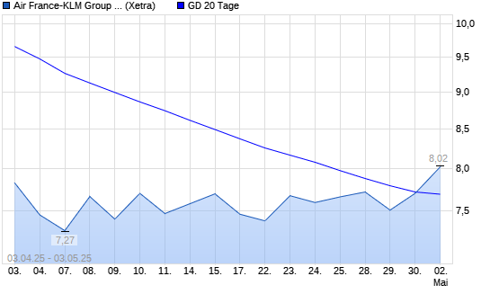Mit dem Anstieg auf 7,88 EUR hat die Air France-KLM-Aktie am 02.05.2025 die 20-Tage-Linie nach oben gekreuzt.
