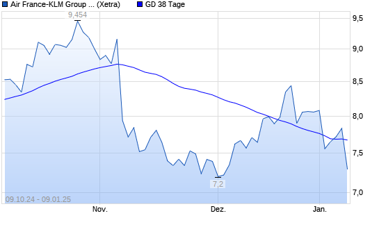 Mit dem Anstieg auf 7,78 EUR hat die Air France-KLM-Aktie am 08.01.2025 die 38-Tage-Linie nach oben gekreuzt.