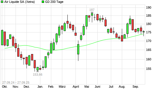 Mit dem Anstieg auf 175,54 EUR hat die Air Liquide-Aktie am 26.09.2025 die 200-Tage-Linie nach oben gekreuzt.
